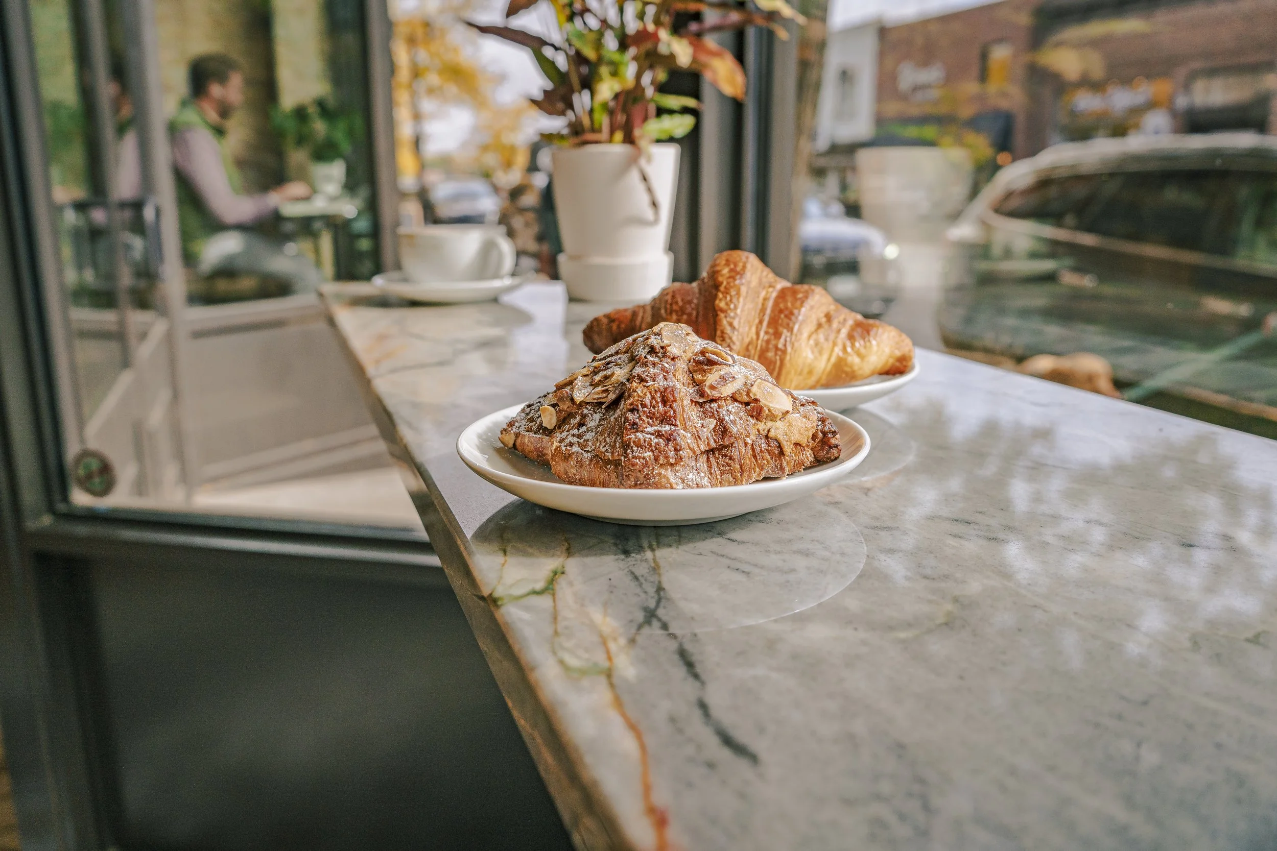 Bacon, egg, cheese with a peach honey jam served on a brioche bun.